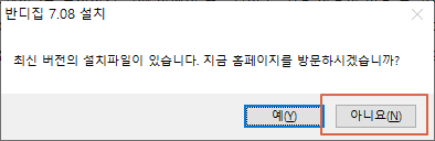 버전이 현재 7.09까지 나왔습니다. 일단 <아니오>를 누르고 설치를 진행 후 시간이 되실 때 업데이트하시면 편리하실 듯합니다.