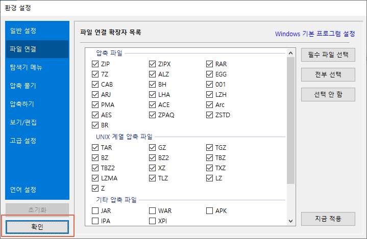 또, 알집의 전용 압축 형식인 ALZ, EGG 포맷의 확장자를 지원하여 압축 파일을 해제할 수 있다는 부분도 반디집의 중요한 기능입니다.