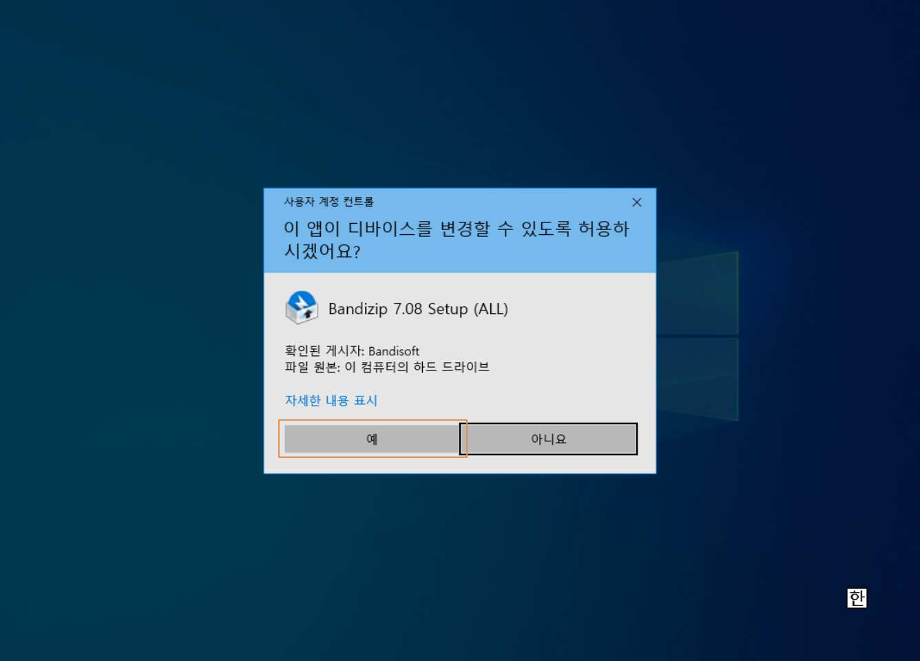 사용자 계정 컨트롤이 열리면 <예>를 누릅니다.