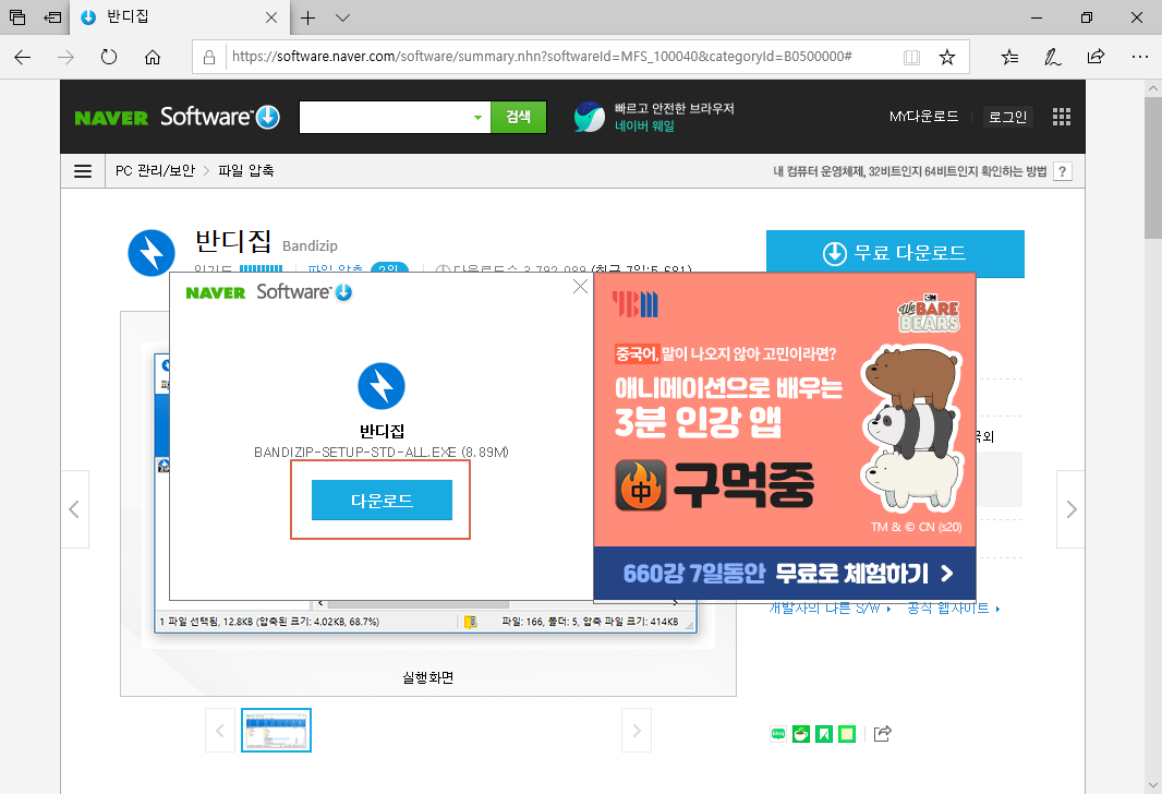 반디집을 다운로드하시려면 여기를 참조하세요.