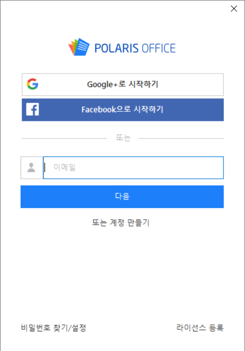 <로그인 하기>를 선택하고 회원가입을 하면 폴라리스 오피스(Polaris Office)의 클라우드인 폴라리스 드라이브를 활용할 수 있어 활용성을 극대화하실 수 있습니다.