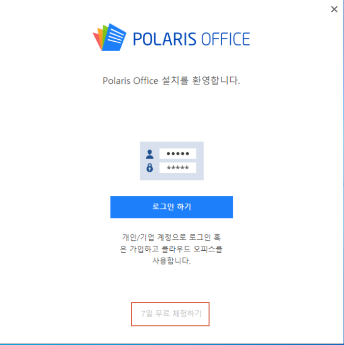 <로그인 하기>를 선택하고 회원가입을 하면 폴라리스 오피스(Polaris Office)의 클라우드인 폴라리스 드라이브를 활용할 수 있어 활용성을 극대화하실 수 있습니다.