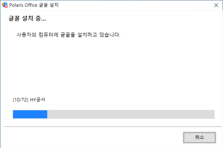 72개의 글꼴이 설치되어 시간이 좀 소요되는 것 같습니다.