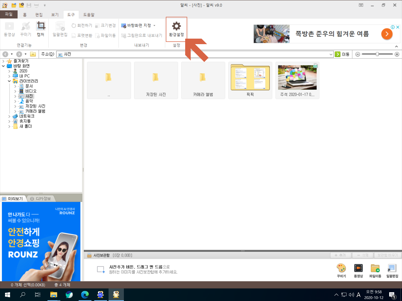 알씨를 실행합니다. <도구>를 선택합니다.