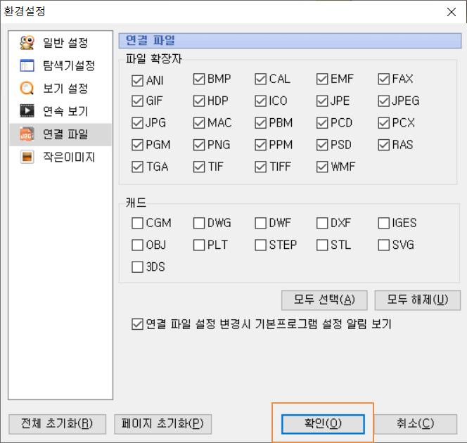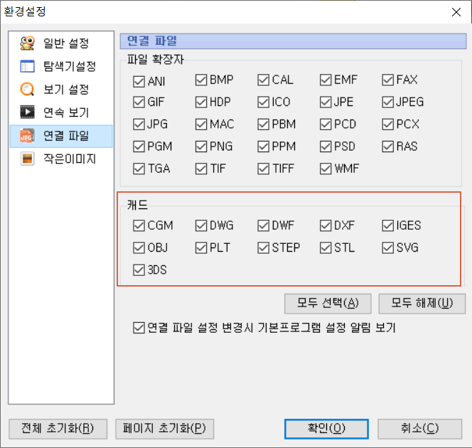 알씨에 환경설정을 이용하면 캐드 파일 연결 설정을 조정할 수 있으므로 이렇게 활용하시면 될듯 합니다.