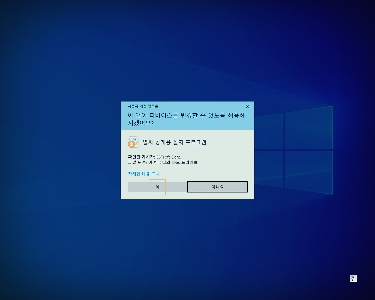 사용자 계정 컨트롤 창이 열리면 <예>를 누릅니다.