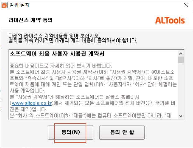 <동의>를 누릅니다.
