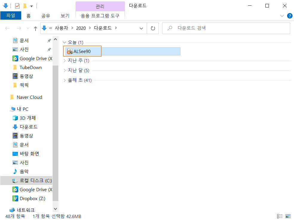 다운로드 경로로 이동하면 알씨 설치 파일이 보입니다. 설치 파일을 실행합니다.
