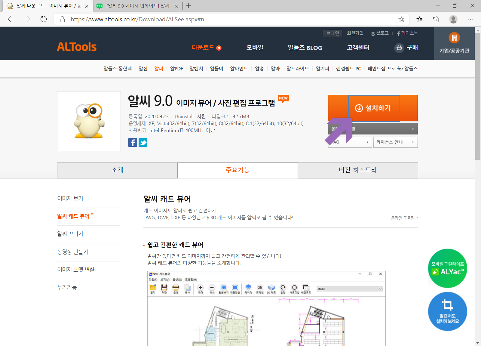 캐드 뷰어 기능까지 갖춘 알씨를 다운로드하시려면 여기를 참조하세요.