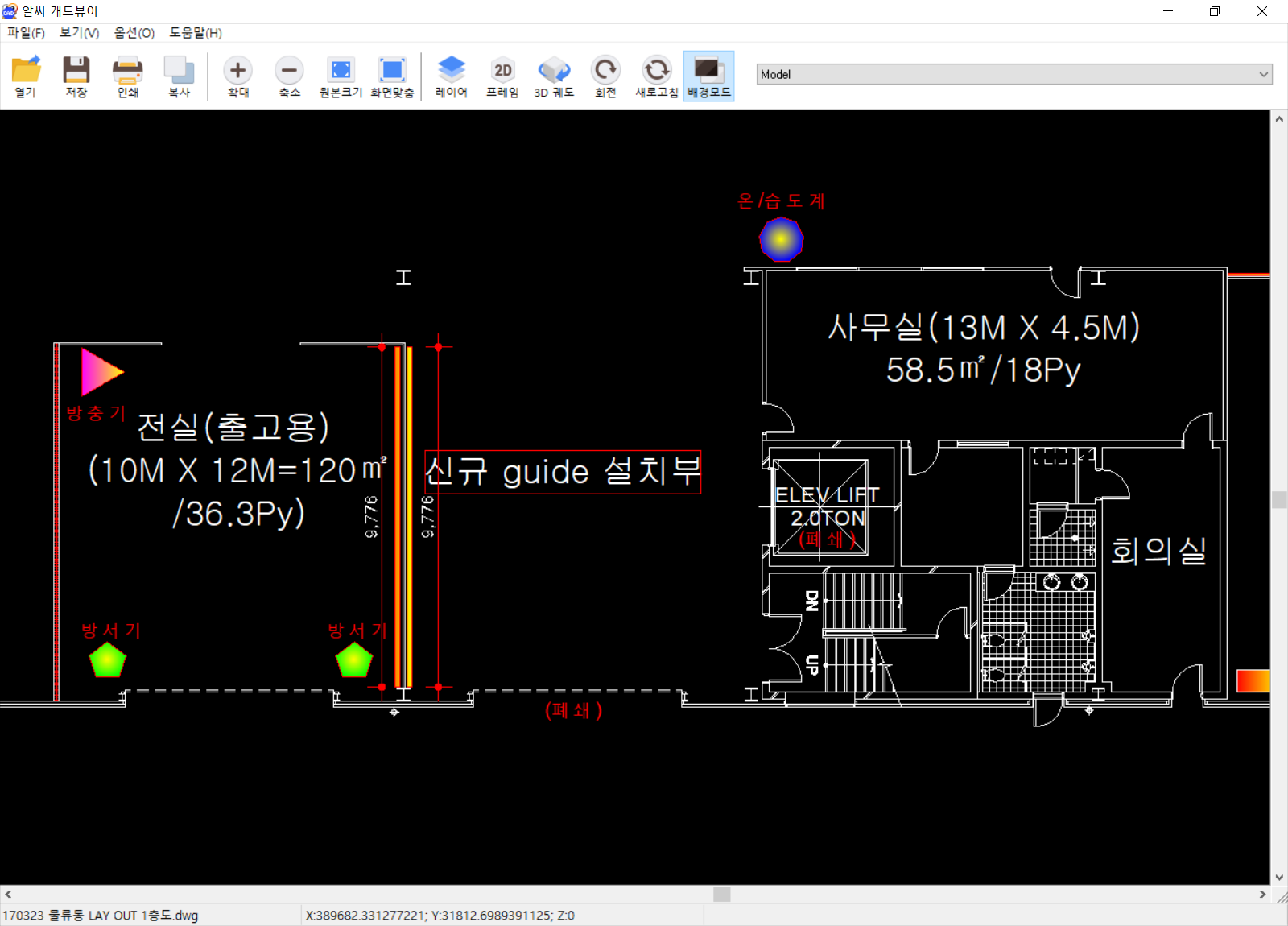 캐드 프로그램처럼 배경이 검정색이라서 도면 보기 가독성이 좋습니다. 역시 배경은 검은색이죠