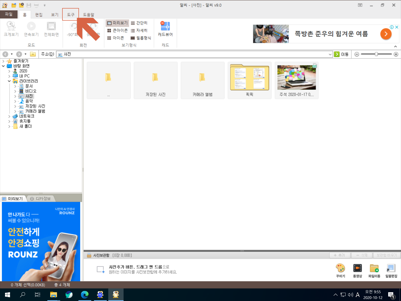 알씨를 실행합니다. <도구>를 선택합니다.