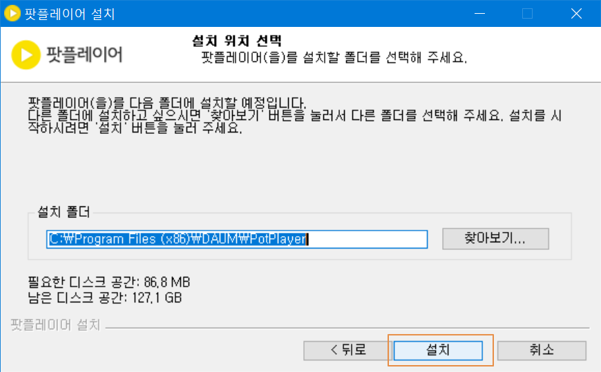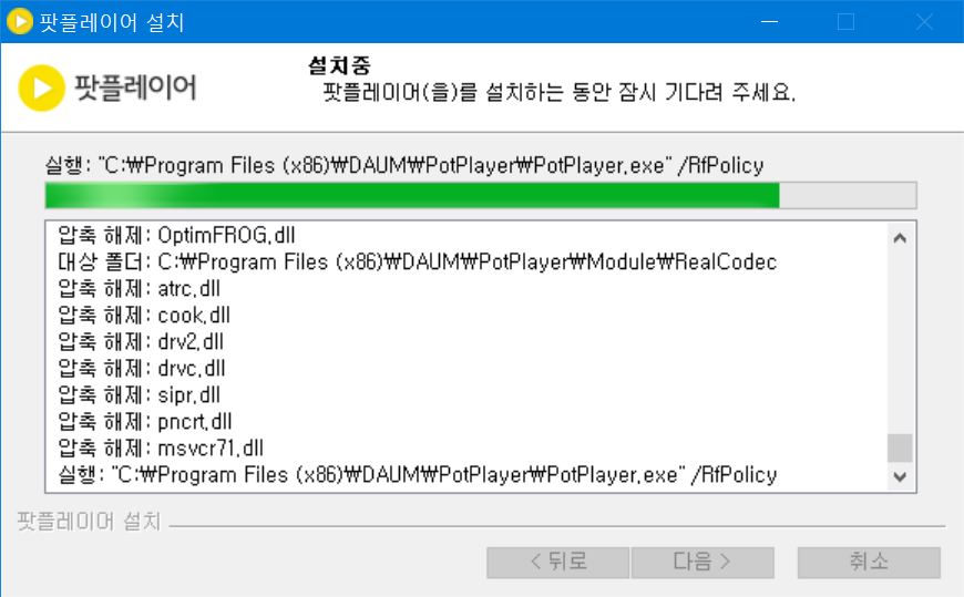 팟플레이어를 설치하는 동안 잠시 기다려 주세요.