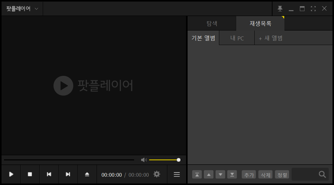 재생 전용 팟플레이어 입니다. 옆에 카카오 라이브가없어졌으며, 탐색과 재생목록이 보입니다.