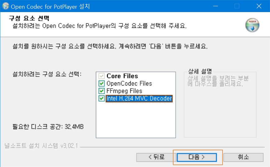 이왕 설치하는것이니 OpenCodec Files외에 FFmpeg Files 및 Intel H.264 MVC Decoder까지 체크하시는게 좋습니다.