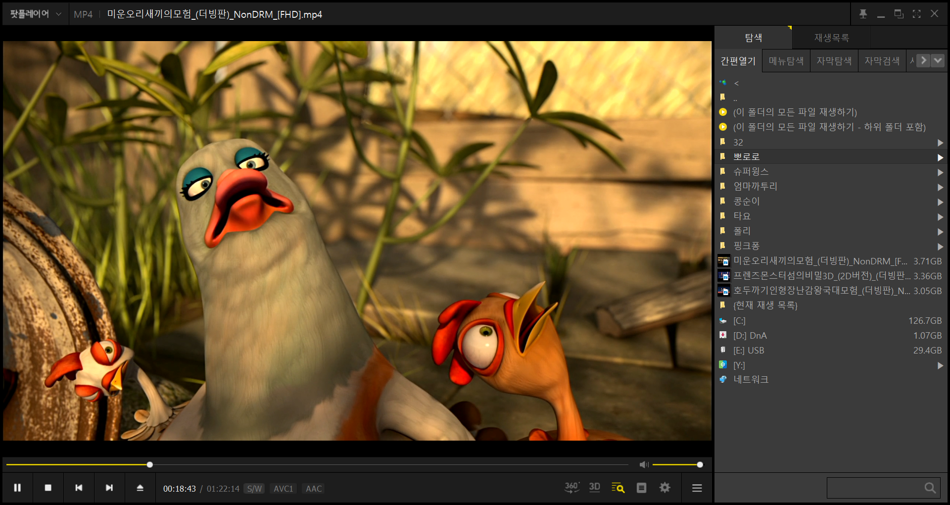 다음팟플레이어로 동영상을 재생해 보았습니다. 깨끗하게 끊김없이 잘나옵니다.