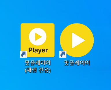 바탕화면에 팟플레이어의 아이콘과 재생 전용 아이콘이 나란히 생성되었습니다. 필요에 따라서 동영상 플레이어로만 사용하고 싶으면 재생 전용 팟플레이어를 실행하여 활용이 가능합니다.