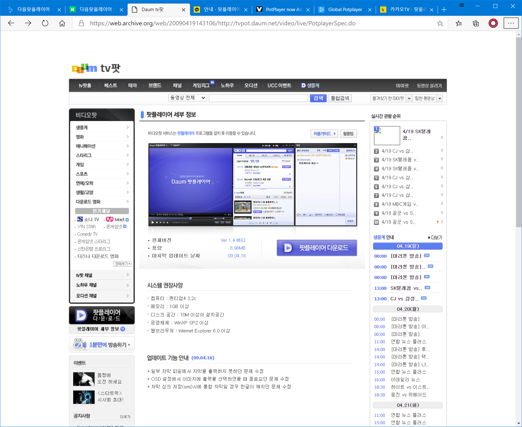 2009년 4월의 다음팟플레이어의 모습입니다. 간결하고 직관적인 인터페이스로 지금은 터치 인터페이스를 감안하여 더 간결해지긴했지만 그때 모습이 더 나은듯 하다는 의견도 있는것 같습니다.