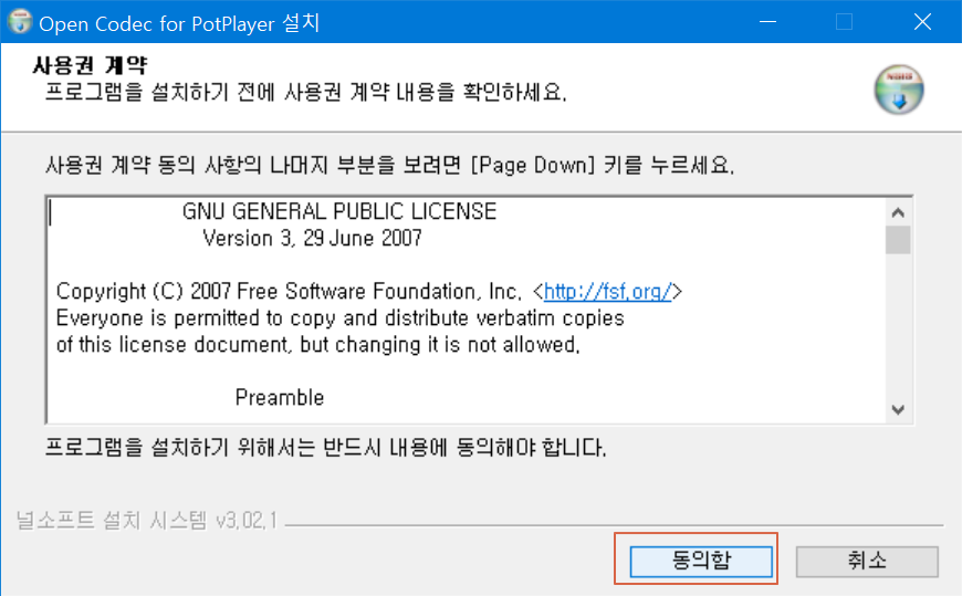 오픈 코덱 설치입니다. <동의함>을 누릅니다.