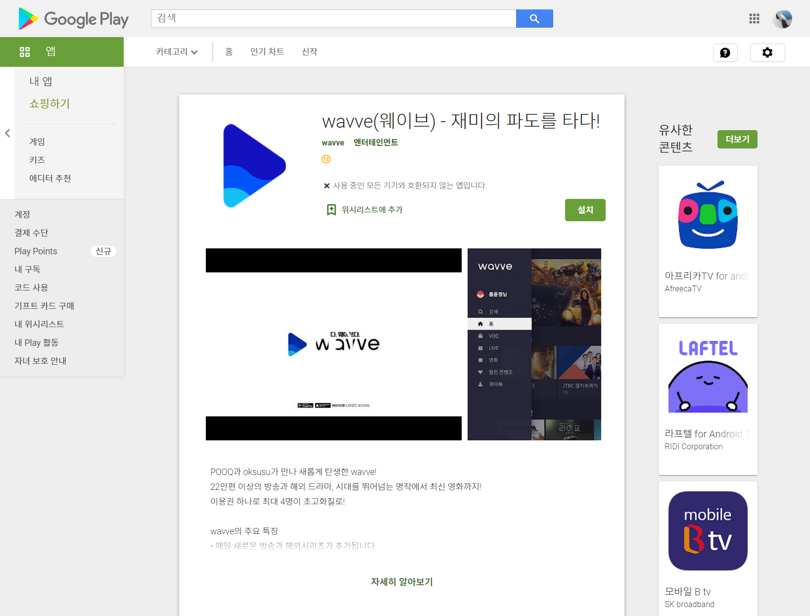 웨이브(wavve) 다운로드는 여기를 참조하세요.