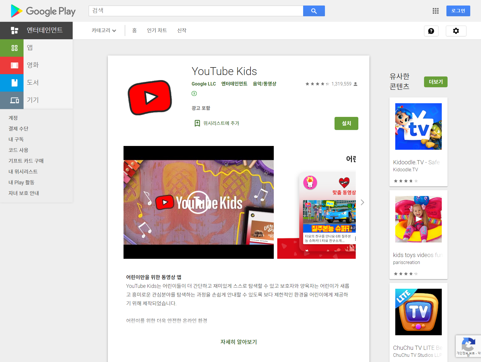 유튜브 키즈(YouTube Kids) 다운로드는 여기를 참조하세요.