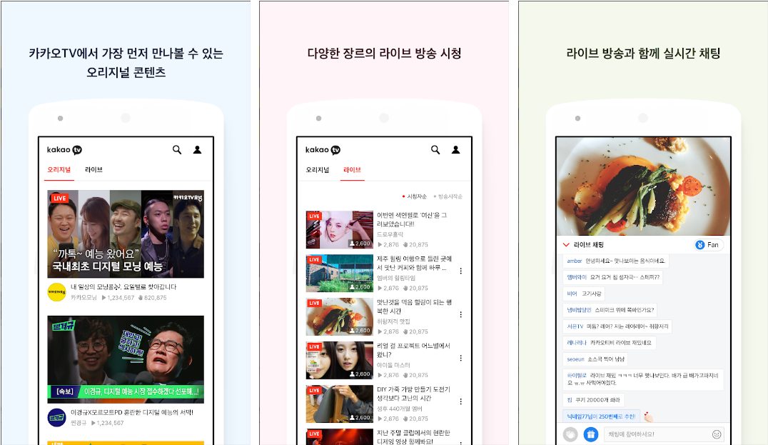 카톡에서 친구하고, 카톡에서 바로보는, 카카오TV는 설명이 필요없을듯한 카카오TV 앱입니다. 카카오TV 앱을 통해 카카오 오리지널 콘텐츠와 라이브 방송을 시청하실 수 있습니다. 카카오TV는 유튜브, 네이버TV, 아프리카TV 등의 소통형 방송 플랫폼 입니다.