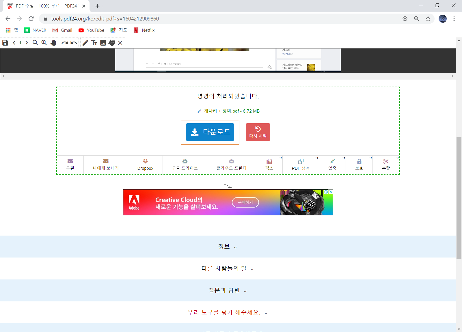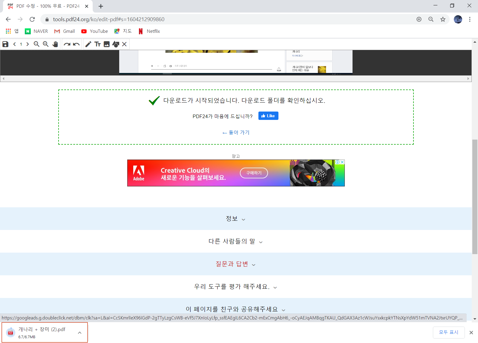 다운로드가 완료되면 편집된 PDF 파일을 확인해 봅니다.