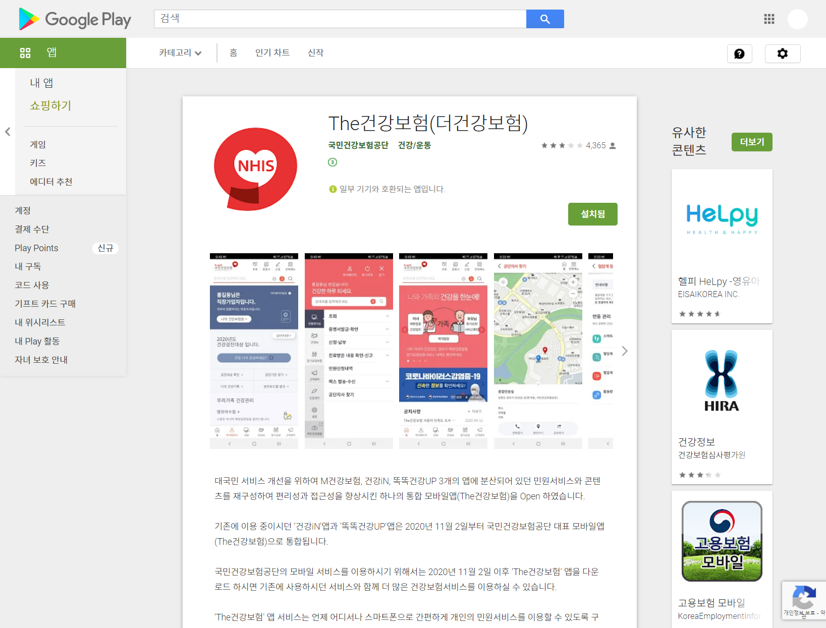 국민건강보험공단의 모바일 서비스를 이용하시기 위해서는 2020년 11월 2일 이후 'The건강보험' 앱을 다운로드 하시면 기존에 사용하시던 서비스와 함께 더 많은 건강보험서비스를 이용하실 수 있습니다.