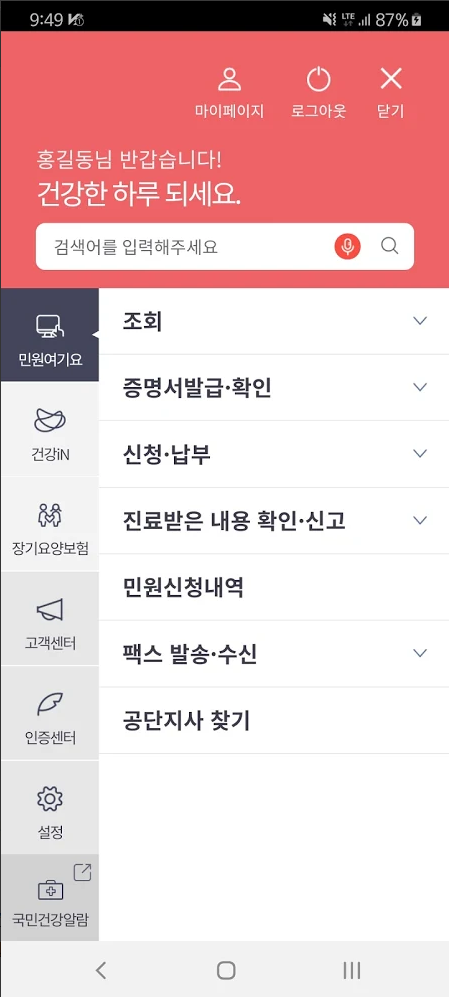 나의 건강보험증도 확인할 수 있으며, 각종 해당 증명서 발급과 확인 그리고 신청 및 납부, 팩스 발송과 수신 등의 기능을 활용할 수 있어 국민건강보험과 관련된 거의 모든 일이 해결 가능합니다.
