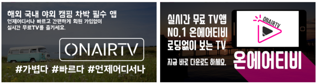 온에어티비(OnAirTV)는 메뉴도 직관적이라서 무척 편리하게 사용이 가능한 앱이며, 광고도 없이 무료로 사용이 가능하여 많은 사용자를 확보하고 있습니다.