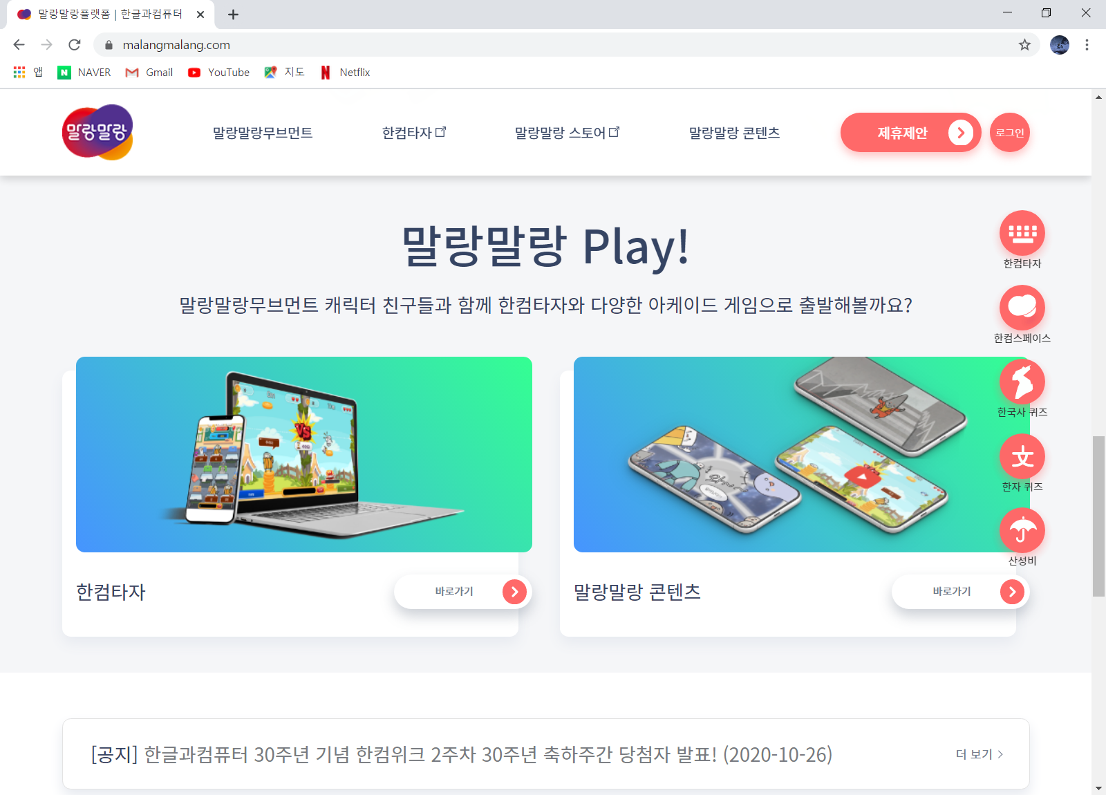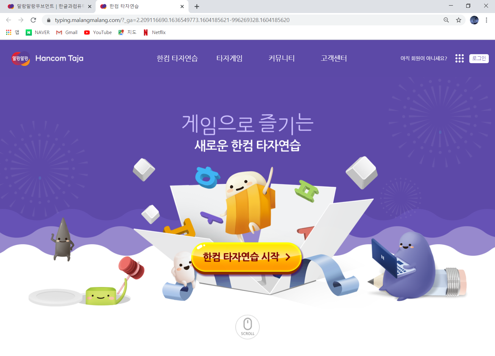 한컴 타자연습, 한글 타자연습 사이트 말랑말랑 플랫폼에 타자연습과 타자게임을 접속하시려면 여기를 참조하세요.