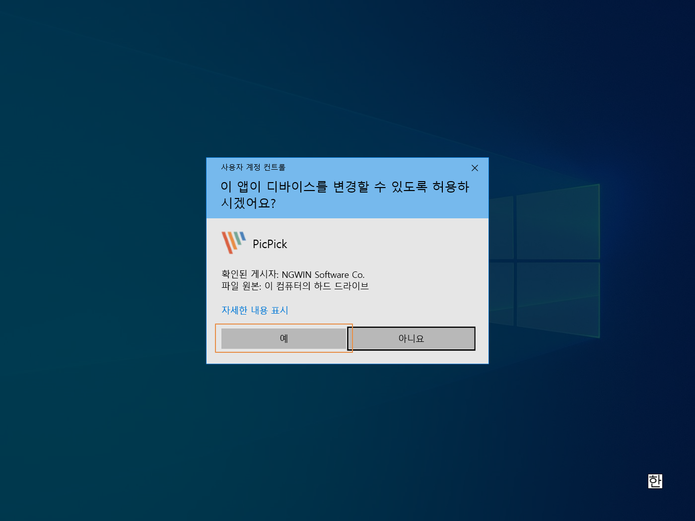 사용자 계정 컨트롤이 실행되면 <예>를 누릅니다.